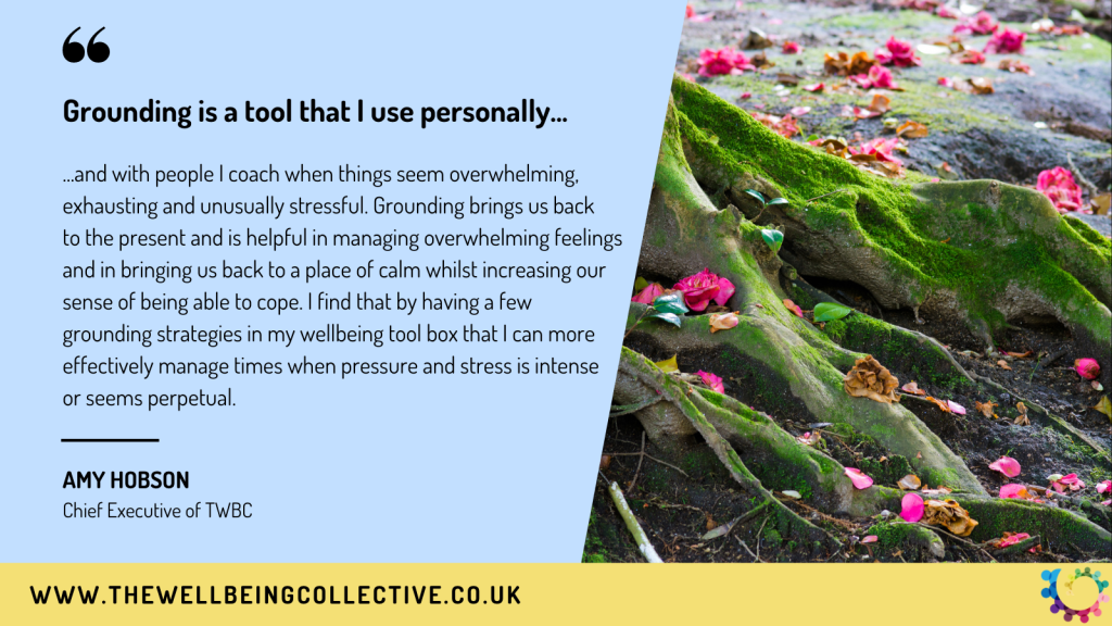 - My Anchor – When talking with a group of senior leaders who were experiencing exhaustion and ongoing stress I asked them to find (from home), a small physical item that had positive memories or meant something positive to them, once they had identified their object they held it tightly and closed their eyes, allowing their mind to explore what the item meant to them and what they wanted to think about and feel every time they held it in the future. The items ranged form a heart key ring to a small fridge magnet, a pendant necklace to a photo of a love one as a phone screen saver. By identifying a physical item and allowing it to symbolise something constant and positive in our lives we can use it every time we need a boost of positive calming energy to ground us in the moment. The more we use a anchor and the more powerful the positive thought it represents to more it will act as a grounding tool.