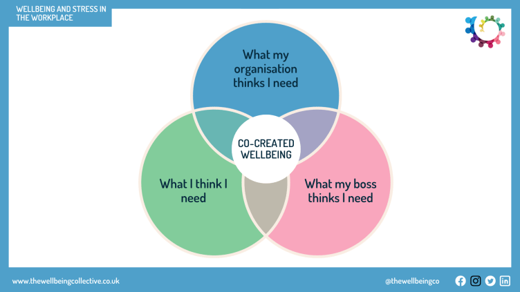 When you create the circumstance so your staff can say what they need, alongside embedding a safe and open culture, one where staff are not afraid to ask and managers are not afraid to listen or say yes, you can achieve a co-created wellbeing organisation that truly supports its staff. A safe space where it’s ok to have ideas, ask and make things happen.